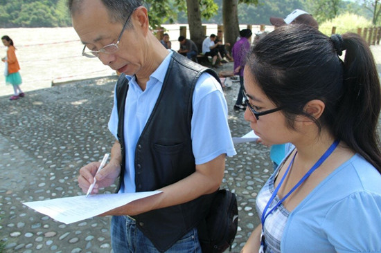 “綠色新生態(tài)”團(tuán)隊(duì)的成員來(lái)自四川農(nóng)業(yè)大學(xué)資源與環(huán)境學(xué)院,此次實(shí)踐的主題是“宣環(huán)保足探石棉縣,揚(yáng)生態(tài)共筑中國(guó)夢(mèng)”。隊(duì)員們前往災(zāi)后重建縣城——雅安市石棉縣開(kāi)始為期8天的征程:走訪石棉縣下屬各鄉(xiāng)鎮(zhèn),發(fā)放調(diào)查問(wèn)卷,采訪相關(guān)政府部門(mén),參觀革命紀(jì)念館等。雖然實(shí)踐進(jìn)展的不是一帆風(fēng)順,但隊(duì)員們?nèi)詧?jiān)持不懈,不斷反思自我!敖裉斓膶(shí)踐帶給我最多的就是震撼和感動(dòng),在分發(fā)便利貼時(shí)遇到了很多困難,但克服這些困難之后會(huì)有一種深深的滿足感。飽含濃郁的紅色文化氛圍的安順是我們小隊(duì)宣傳‘中國(guó)夢(mèng)’的絕佳之地,我們還要更加努力!标(duì)員胡瀚文在中國(guó)工農(nóng)紅軍強(qiáng)渡大渡河紀(jì)念館做環(huán)保宣傳時(shí)這樣告訴記者。另一位隊(duì)員郭瑀說(shuō):“能深入鄉(xiāng)村進(jìn)行面對(duì)面的了解對(duì)我來(lái)說(shuō)是一個(gè)全新的經(jīng)歷,很新鮮也很有意義。雖然實(shí)踐的時(shí)候很累,但還是有一股力量支撐著自己堅(jiān)持下去,我們的成員們都很棒,相信我們能取得好的成果。”