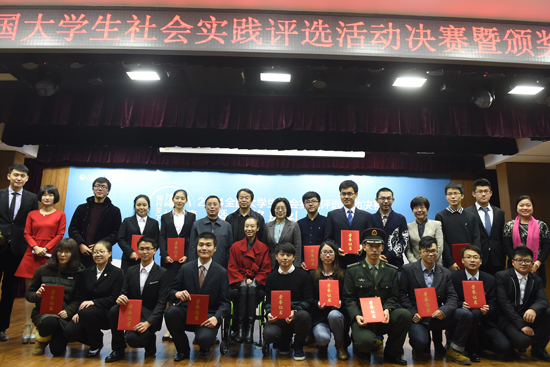 共青團中央學校部副部長李驥向獲獎師生表示祝賀,并說,大學生要像今天所有的團隊一樣,“胸懷天下,關注社會上需要我們幫助的人,弘揚民族‘天下興旺,匹夫有責’的傳統(tǒng),要有一種家國的情懷”,這是大學生知和行要達到的目的。
