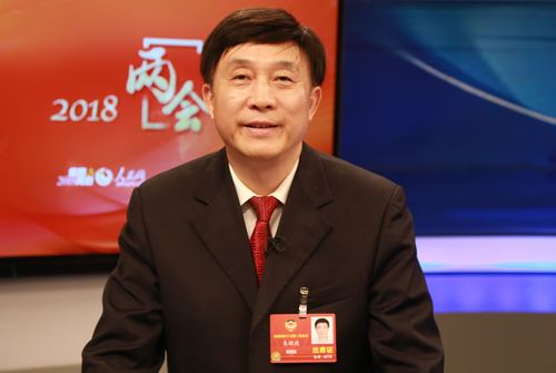 全國(guó)政協(xié)委員、江蘇省政協(xié)副主席朱曉進(jìn)做客人民網(wǎng)(王喆 攝)
