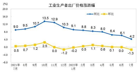 7月份,工業(yè)品價格整體下行,PPI環(huán)比下降,同比漲幅繼續(xù)回落。