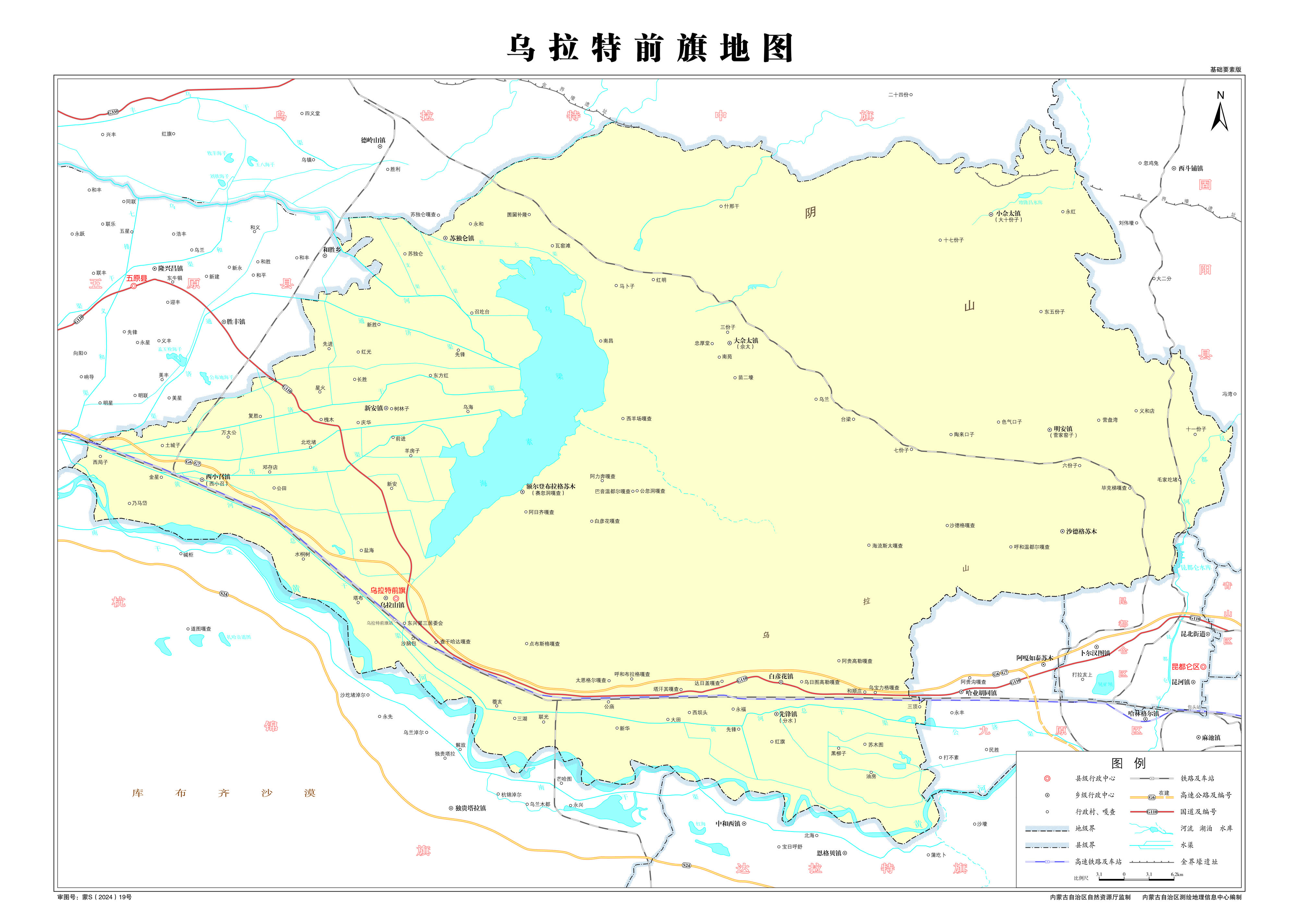 鎮(zhèn):烏拉山鎮(zhèn)、呼和布拉格鎮(zhèn)、巴音花鎮(zhèn)、新安鎮(zhèn)、大佘太鎮(zhèn)、朝陽(yáng)鎮(zhèn)、西小召鎮(zhèn)、先鋒鎮(zhèn)