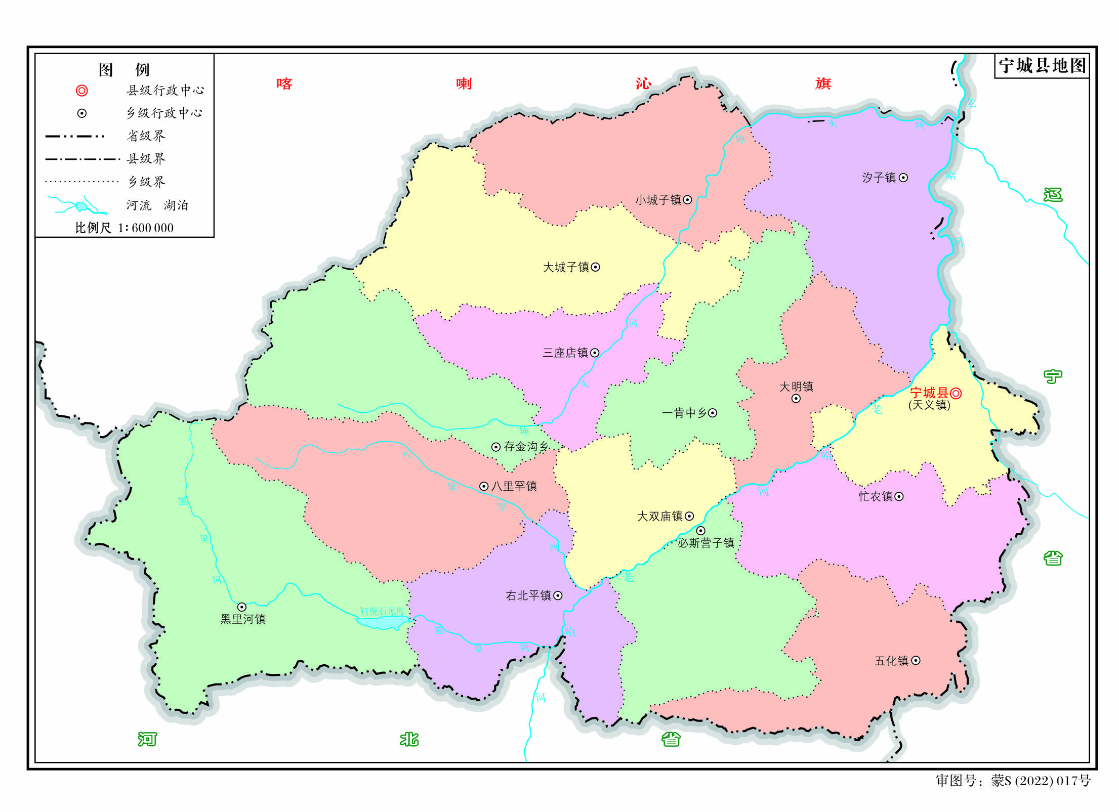 寧城地區(qū),西漢時(shí)期設(shè)右北平郡,唐代置過饒樂都督府,奚王建過牙帳,遼統(tǒng)和二十五年(1007)遼建中京,設(shè)中京大定府,元代設(shè)武平路,后設(shè)大寧路大寧縣,明洪武二十六年(1393)明太祖第十七子寧獻(xiàn)王朱權(quán)就潘大寧。清代初期屬喀喇沁中旗,清康熙四十四年(1075)增建為喀喇沁中旗。自清至民國寧城地區(qū)蒙制屬卓索圖盟,漢制屬熱河省,長期實(shí)行蒙漢分治。清代,漢制歸承德平泉州、熱河省平泉縣。民國20年(1931)設(shè)寧城設(shè)置局,民國22年(1933)年始稱寧城縣。1945年我黨建立平泉縣,包含寧城地區(qū)。解放后,先后設(shè)寧城縣、喀喇沁中旗、寧城縣--喀喇沁旗聯(lián)合政府,1949年改稱寧城縣人民政府,屬熱河省.1956年,熱河省撤消,寧城縣劃歸內(nèi)蒙古自治區(qū)昭烏達(dá)盟轄。1969年隨昭烏達(dá)盟劃歸遼寧省,1979年又重歸內(nèi)蒙,1983年撤盟建市,寧城縣屬赤峰轄至今。 縣城所在地為:天義鎮(zhèn)。