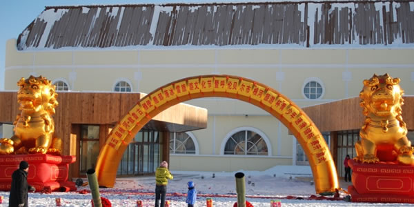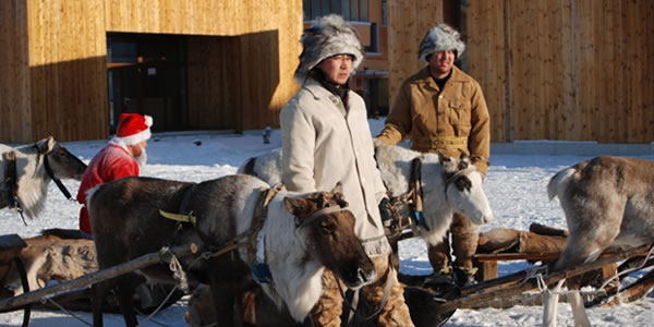 敖 生態(tài)環(huán)境 這里是森林與草原的界線,大興安嶺和呼倫貝爾大草原在這里交匯,一邊是草原、河流,一邊是森林、山崗,空氣新鮮,野味十足,當(dāng)?shù)厝税氘?dāng)真的說"這地方絕對沒有污染,連蒼蠅、蚊子都是綠食食品"。 國家給敖魯古雅鄉(xiāng)人建立了定居地,但馴鹿只能生活在森林里,所以除了在定居點的部分村民,密林中還散布著五個馴鹿站,最遠(yuǎn)的在150公里。過去,敖魯古雅人養(yǎng)馴鹿只是作為運(yùn)輸工具,一頭馴鹿可以負(fù)重35公斤左右,每小時可以行走5公里,1964年,取得了割鹿茸成功,F(xiàn)在,馴鹿已經(jīng)不大用來運(yùn)輸了,而成了當(dāng)?shù)厝说闹饕?jīng)濟(jì)來源,中國唯一的這群馴鹿大約只有10000只左右了。 敖鄉(xiāng)民俗村 敖魯古雅鄂溫克民俗村位于根河市西郊,南臨S301國道,交通十分便利。民俗村總建筑面積58,700平方米,是集大中型會議、休閑度假、民俗展示、娛樂為一體的綜合性旅游度假村,是一處自然——人文旅游 景觀。 民俗村依托森林、河流,鄂溫克獵民的民俗民風(fēng),推出一系列具有地方特色的旅游活動項目:主要有森林觀光、探險、模擬狩獵;觀民族宗教、歌舞、民俗表演;品嘗民族風(fēng)味餐、參觀敖鄉(xiāng)新居、訪獵民等活動;村內(nèi)建有木質(zhì)別墅式的游客服務(wù)中心,民俗文化博物館、民俗表演平臺、表演廳和餐廳、反映鄂溫克獵民歷史的圖騰廣場、有四十、五十、六十年代不同的撮羅子,有上山索道車、木橋和四處風(fēng)格獨特的獵民點;還有民俗表演隊和馴鹿車穿行其中,可對敖魯古雅鄂溫克獵民的歷史、文化、宗教、習(xí)俗進(jìn)行了充分的展示。 敖魯古雅鄉(xiāng)距離我國最北端的漠河縣約一百公里左右的路程,位于大興安嶺深處的滿歸林區(qū)。這里氣候十分寒冷,記者走在蜿蜒的山路上,腳下的積雪發(fā)出“咯吱咯吱”的脆響,眼前已是呵氣成冰,身上的棉襖凍得硬梆梆的。隨行的鄉(xiāng)黨委書記鮑玉林說:“現(xiàn)在大約是零下30攝氏度,你們趕上好時候了,往年這個時候得有零下五十度,外面到處冒白煙。” 敖魯古雅鄉(xiāng)有一條主干道,長不過二三百米。道兩邊是整齊的幾排木刻楞房和磚瓦房,象征著主人的富裕程度。敖鄉(xiāng)雖小,卻擁有自己的博物館、學(xué)校、文化站和小商店。春節(jié)雖過,但喜慶氣氛尚濃,白雪映襯下,墻上的大紅對聯(lián)分外惹眼。 敖鄉(xiāng)生活著近500人,其中鄂溫克人大約有230人。他們現(xiàn)在已經(jīng)是獵民定居后的第三代了。在離此50到100多公里的山林中,還有四個獵民點,生活著30多名習(xí)慣于打獵和在山上飼養(yǎng)馴鹿的老獵民們。