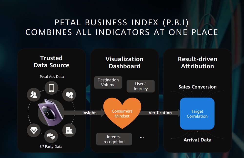 借助華為的技術(shù)和生態(tài)系統(tǒng)合作伙伴,鯨鴻動能還構(gòu)建了Petal Business Index(P.B.I)跨境數(shù)據(jù)驅(qū)動解決方案,以滿足更多企業(yè)組織的需求。作為以數(shù)據(jù)驅(qū)動的營銷工具,P.B.I整合了來自華為設(shè)備和鴻蒙生態(tài)的全方位數(shù)據(jù),并與第三方在線旅游服務(wù)平臺等行業(yè)伙伴合作,共同構(gòu)建了一個(gè)可信賴的數(shù)據(jù)模型,并圍繞目的地的關(guān)鍵指標(biāo)建立可視化的儀表板。P.B.I通過建立銷售轉(zhuǎn)化與落地?cái)?shù)據(jù)之間的相關(guān)模型,進(jìn)行有效性分析,輔助營銷策略的制定。