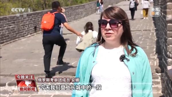 俄羅斯考察團(tuán)成員 安娜:今天我們登上長城中的一段,我的感受非常棒。這段長城登起來不算太累,這點很好。