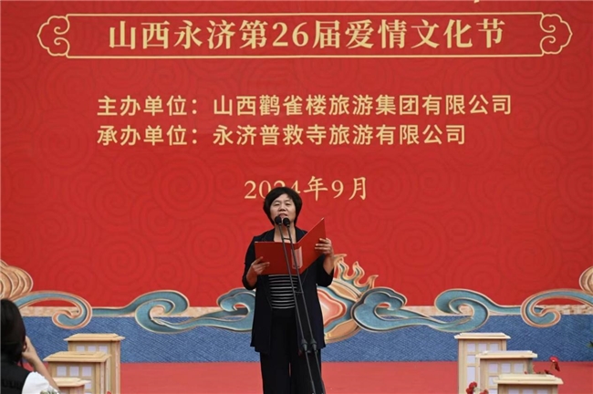 9月 21 日,普救寺迎來了第 26 屆愛情文化節(jié)的盛大開幕式。開場(chǎng)節(jié)目《蒲州花傘》瞬間將人們帶入了濃郁的地域風(fēng)情之中。隨后,主持人隆重介紹到場(chǎng)領(lǐng)導(dǎo)嘉賓。永濟(jì)市政府黨組成員崔子龍發(fā)表了誠(chéng)摯而熱情的致辭,表達(dá)了對(duì)愛情文化節(jié)的美好祝愿和對(duì)永濟(jì)文化旅游事業(yè)的殷切期望。市委宣傳部部長(zhǎng)李朝霞宣布開幕,正式拉開了本次愛情文化節(jié)的精彩帷幕。