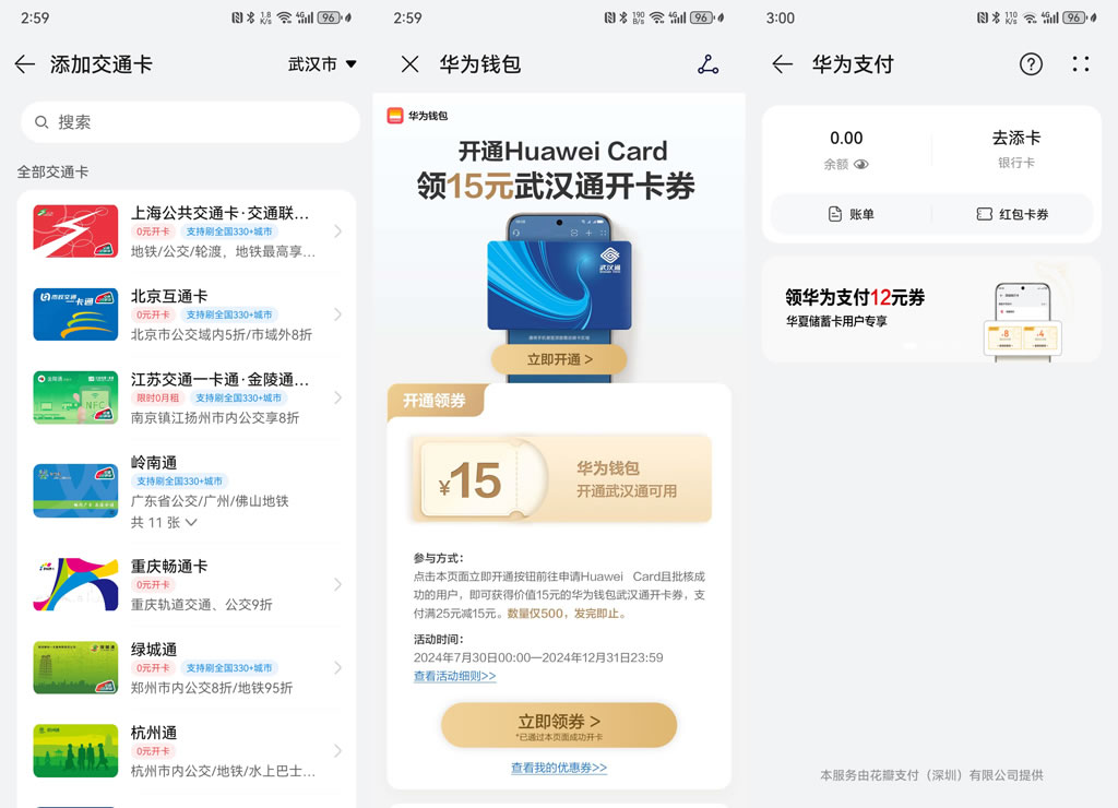 值得一提的是,華為錢包在國慶節(jié)期間還帶來了不少福利,比如開通公交卡0元起,一張卡就可刷全國330多個旅游城市;新用戶開卡充值交通卡還有特別折扣,9月23日至10月7日最高立減5元;如果需要高精度定位服務(wù)和車道級導(dǎo)航,新用戶使用華為錢包開卡首年0元,在負(fù)一屏充值手機話費或者加油時也可享受首單立減6元等優(yōu)惠。綁定銀行卡也有各種立減活動,十分劃算!