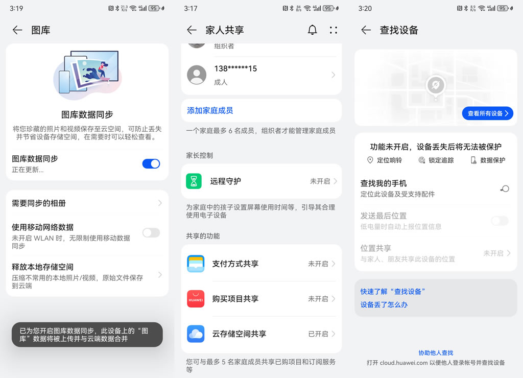 如果實在找不回手機,也不用擔(dān)心旅途中拍攝的照片和視頻會丟失。因為只要開啟了華為云空間的“圖庫數(shù)據(jù)同步”功能,手機里的照片和視頻就會自動上傳到云端,只要通過華為賬號就能它們找回來。