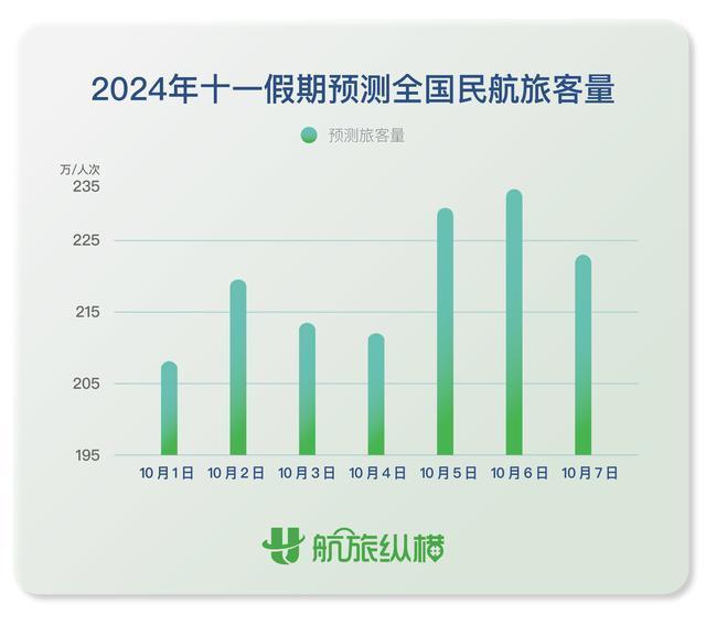今年國慶旺季民航繼續(xù)呈“量升價跌”趨勢。據(jù)民航出行服務(wù)平臺“航旅縱橫”近日發(fā)布的報告顯示,2024年國慶假期期間(10月1日至10月7日)全國民航旅客量預(yù)計將超1565萬人次,日均旅客運輸量達223萬人次,同比2023年國慶假期增長7%,較2019年同期增長19%。