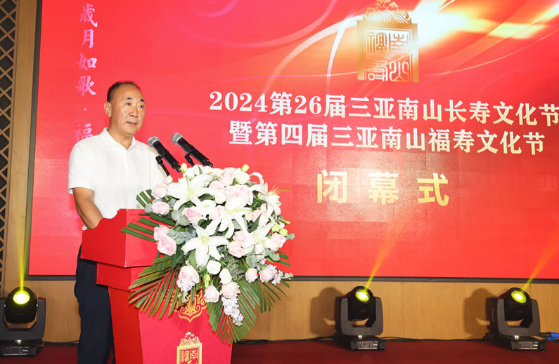 在閉幕式上,南山文旅公司總經(jīng)理劉春立致辭表示,今年“長(zhǎng)壽·福壽文化節(jié)”堅(jiān)持弘揚(yáng)中華優(yōu)秀傳統(tǒng)文化,傳承敬老愛(ài)老傳統(tǒng)美德,不斷踐行在文化領(lǐng)域探索創(chuàng)新,展現(xiàn)文化的新內(nèi)容、新風(fēng)采。三亞南山景區(qū)作為長(zhǎng)壽文化的重要傳承地,一直以來(lái)都致力于將長(zhǎng)壽·福壽文化融入景區(qū)的每一處細(xì)節(jié),我們通過(guò)一次次的活動(dòng),傳遞了長(zhǎng)壽文化的深刻內(nèi)涵,展現(xiàn)了南山福壽文化的獨(dú)特魅力。