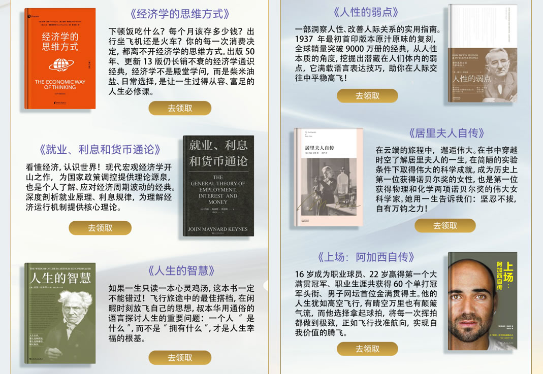 華為閱讀與國航共同精選了適合旅途閱讀的“國航伴讀書單”,包括《經(jīng)濟學(xué)的思維方式》、《就業(yè)、利息和貨幣通論》、《人生的智慧》、《人性的弱點》、《居里夫人自傳》、《上場:阿加西自傳》等好評付費書籍,并提供給國航用戶免費閱讀,為乘客的飛行時光帶來更多精神享受。