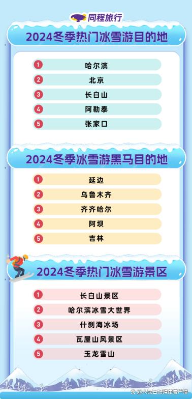 同程旅行2024冬季冰雪游趨勢報(bào)告中的部分排名。同程研究院 圖