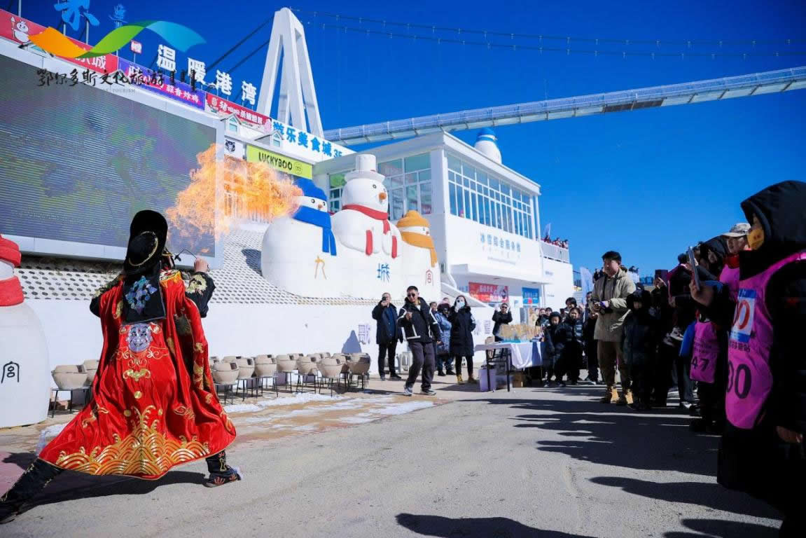 品美食、觀演藝、玩旅拍、住民宿、看比賽,本次“跟著賽事去旅行”2025暖城鄂爾多斯冰雪嘉年華內(nèi)容精彩紛呈,充分彰顯了文旅體融合發(fā)展的新魅力。在特色文藝展演中,鄂爾多斯歌舞熱情奔放,盡顯特色民俗風情;IP動漫互動巡游,讓孩子們歡笑不斷;非遺傳人的現(xiàn)場展示,激起大家對傳統(tǒng)文化的美好傳承與向往;國潮達人旅拍,為游客留下最美的瞬間;還有九城宮老口味富貴饸饹面、銅鍋涮肉等美食應有盡有。在住宿方面,為選手和游客精心準備了陜北特色的窯洞,體驗民俗風情;比賽之余,深入響沙灣等景區(qū),深度體驗暖城的獨特魅力。
