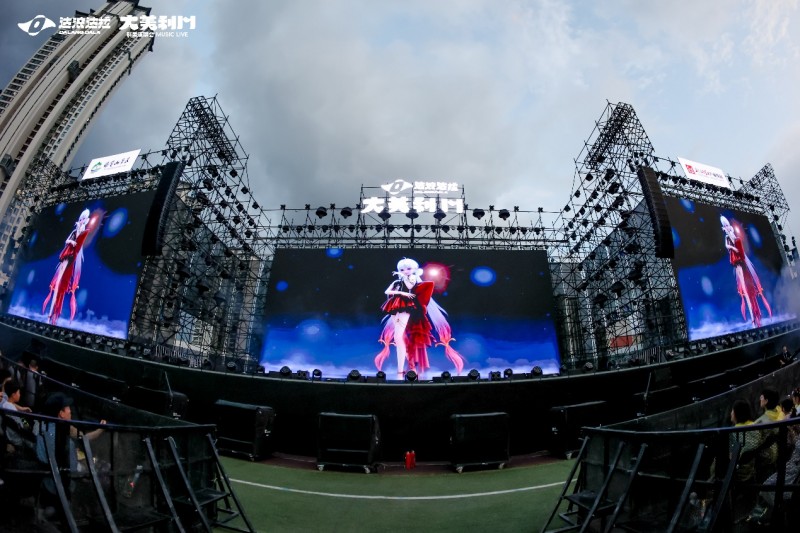 夜幕初降,利川市清源體育廣場已化作人潮涌動的海洋。當(dāng)全場齊聲倒數(shù)“5!4!3!2!1!”時,整個場館瞬間被光影點亮,配合動感鼓點形成震撼視覺沖擊。由訊飛音樂AI虛擬歌手Luya帶來的《黑白幻夢》舞臺拉開整場演出的序幕。
