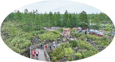 游客在內蒙古阿爾山國家森林公園石塘林景區(qū)游玩。