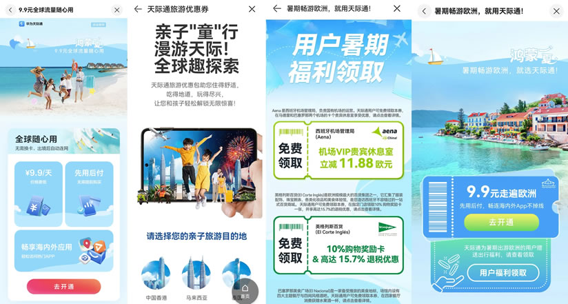暑期,天際通為計(jì)劃出境游的用戶特別推出了“全球隨心用”活動(dòng),境外流量9.9元包天,每天有5GB高速流量,活動(dòng)覆蓋港澳、新馬泰、日韓、歐洲、澳大利亞、美國(guó)(本土地區(qū))等50個(gè)國(guó)家地區(qū),多重優(yōu)惠讓境外出行更劃算。華為天際通還為出行亞洲、歐洲的用戶提供了多地旅游優(yōu)惠權(quán)益,涵蓋機(jī)票酒店、旅游景點(diǎn)、吃喝玩樂等各個(gè)方面,更多精彩等你來發(fā)現(xiàn)!