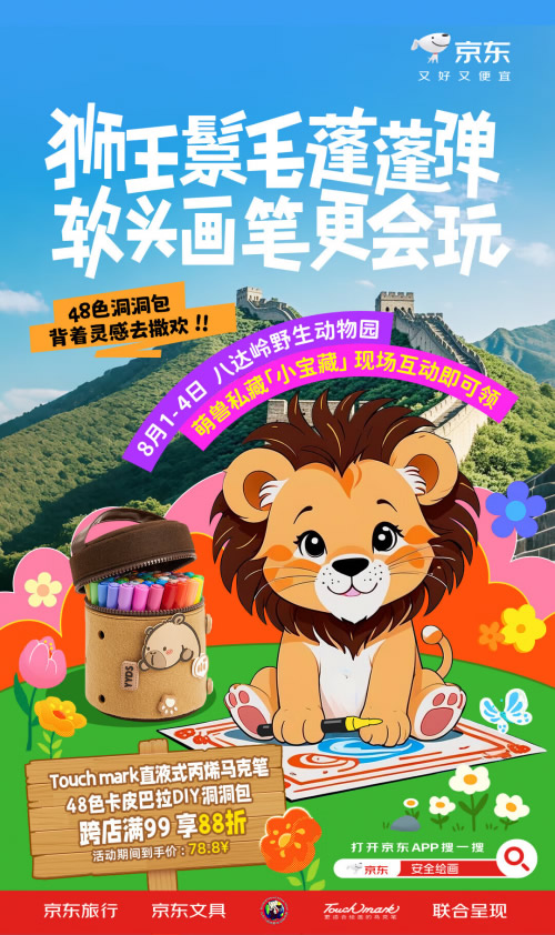 如今暑假期間帶孩子打卡動(dòng)物園和大自然互動(dòng)成為了出游的首選,作為中國(guó)最大的山地野生動(dòng)物園,北京八達(dá)嶺野生動(dòng)物園匯集了世界各地的眾多代表性動(dòng)物,非常適合激發(fā)孩子的創(chuàng)作靈感,在運(yùn)用中掌握繪畫技能。在8月2日至3日,京東攜手八達(dá)嶺野生動(dòng)物園帶來“猛獸開路 人類穩(wěn)住”文具快閃活動(dòng),活動(dòng)期間京東將安排特色籠車在園區(qū)游覽,為親子游客帶來有趣有料的繪畫體驗(yàn),游客完成互動(dòng)集章還能領(lǐng)取精美禮包,F(xiàn)場(chǎng),京東文具攜手青竹畫材、Touchmark、輝柏嘉等知名品牌設(shè)置了產(chǎn)品展示區(qū),游客可上手品鑒京東甄選的安全無毒繪畫文具,掃碼下單還能享受豐厚優(yōu)惠,福利多多。想要和孩子體驗(yàn)一場(chǎng)別開生面的繪畫創(chuàng)作,那就記得鎖定京東的這次快閃活動(dòng)。同時(shí),京東還打造“寶藏文具周”線上會(huì)場(chǎng),為消費(fèi)者帶來寶藏文具推薦,搜索“安全繪畫”一鍵直達(dá)暑假寶藏文具周·靈感周會(huì)場(chǎng),安全無毒隨意畫,親膚水洗真放心。