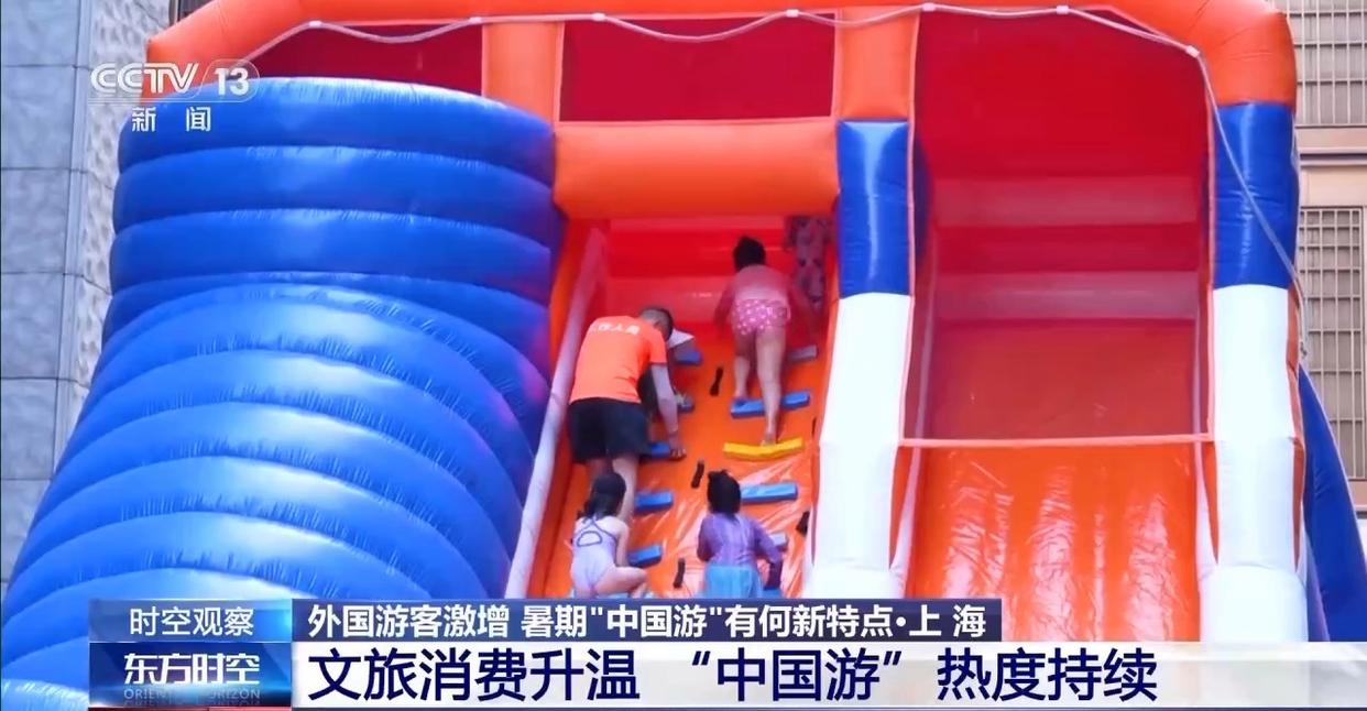 “清涼經(jīng)濟(jì)”也是這個(gè)夏天的熱門打開(kāi)方式。7月以來(lái),上海外灘搬來(lái)了一座暑期限定的水上樂(lè)園,帶領(lǐng)市民游客開(kāi)啟玩水模式。打水仗、蕩秋千、爬索道,每個(gè)角落都藏著意想不到的清涼驚喜。