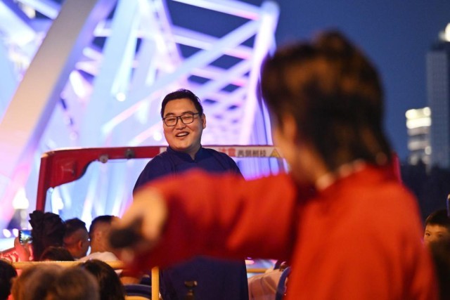 “相聲巴士”的定制化夜間游覽線(xiàn)路,將古文化街、鼓樓、意式風(fēng)情區(qū)、解放橋、天津站世紀(jì)鐘、津?yàn)硰V場(chǎng)、望海樓、“天津之眼”摩天輪等20余處地標(biāo)景點(diǎn)串聯(lián)成線(xiàn)。演員在途中結(jié)合景點(diǎn)進(jìn)行講解,讓觀眾除了能享受海河兩岸夜景和沉浸式津味相聲外,還能深入了解天津歷史,品味天津特色文化。