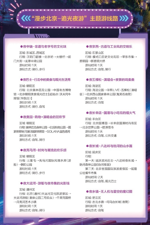 政府引導(dǎo),市場創(chuàng)新,多業(yè)互促,區(qū)域聯(lián)動,重塑著北京文旅版圖,夜間文旅也在通過一些創(chuàng)新模式,延長消費(fèi)時間,拓展消費(fèi)空間。