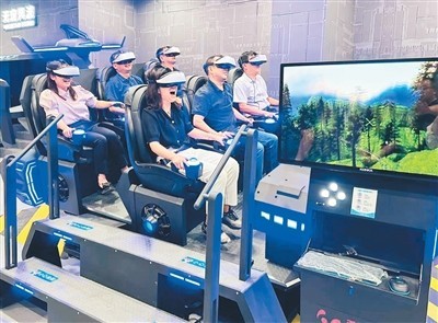 體驗館里,游客體驗《元創(chuàng)芷江》裸眼3D,重回1938年,身臨其境地看到1.9萬余名民工修筑二戰(zhàn)時期盟軍遠東第二機場——芷江機場的場景。近年來,紀念館不斷創(chuàng)新展陳方式,推出和平藝術中心“元宇宙”科技體驗館,以數字化“元宇宙”科技融合手段,打造愛國主義教育研學品牌,提升研學游附加值。體驗館分為14個體驗區(qū)域,運用VR、AR、3D裸眼等沉浸式技術,為游客提供高度虛擬化沉浸式的芷江抗戰(zhàn)歷史故事體驗。