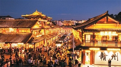 今年夏季,江西省贛州市推動(dòng)消費(fèi)場(chǎng)景創(chuàng)新,借助系列賽事活動(dòng)打造“票根經(jīng)濟(jì)”,吸引八方游客前來(lái)旅游觀光,帶動(dòng)消費(fèi)市場(chǎng)持續(xù)火熱。圖為贛州市章貢區(qū)江南宋城歷史文化街區(qū)。