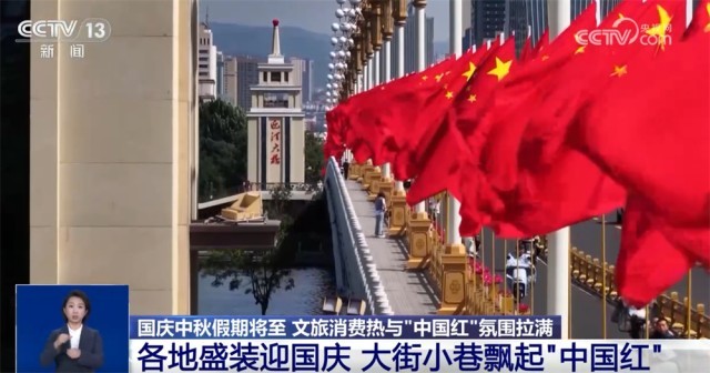央視網(wǎng)消息:當(dāng)秋日的風(fēng)開始裹著桂香的甜,秋日的陽光也鋪展了人們對(duì)國慶假期的期待,撥動(dòng)心弦。再過幾天就是國慶節(jié)了,這兩天,在大江南北,在街頭巷尾,正醞釀著盛大的一抹紅色。