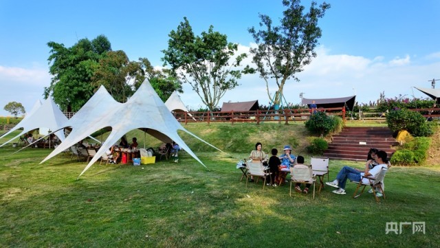 多元體驗讓假日消費延伸出更多維度。秋日艷陽下,孩子們在紅高粱地中盡情高歌;滿天星斗下,非遺傳承人揮舞的鐵花點亮夜空;星空影院前,游人圍坐煮茶觀影;露營基地內,燒烤的香氣飄滿整個田野……這座融合文化體驗與田園休閑的園區(qū),正成為人們的假日消費的新選擇。園區(qū)負責人陳霞介紹,園區(qū)內專門設計了甲骨文識字、傳統(tǒng)文化研學、高粱采收等親子項目,讓游客在體驗中消費,在消費中感受文化。