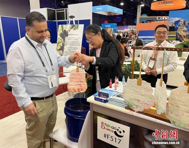 當(dāng)?shù)貢r間10月8日,2025年美國會議獎勵旅游展(IMEX America)繼續(xù)在拉斯維加斯舉行。這是全球會議及獎勵旅游領(lǐng)域最具影響力的展會之一。中國展臺舉辦“中華一刻”——中國非物質(zhì)文化遺產(chǎn)體驗(yàn)等豐富多彩的活動,吸引眾多與會者感受中華文化魅力。圖為與會者在中國展臺體驗(yàn)漆扇制作。