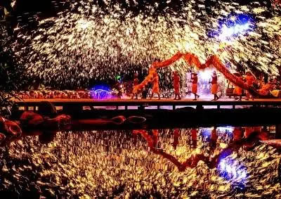 10月5日,在四川省成都市雙流區(qū)黃龍溪古鎮(zhèn),民間藝人表演非遺“火龍燈舞”。新華社發(fā)