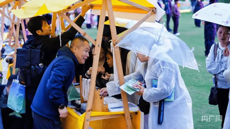 “饒”有好物非遺展與線下沉浸式互動體驗(yàn)區(qū),不少游客前往打卡(央廣網(wǎng)記者 周蓓 攝)