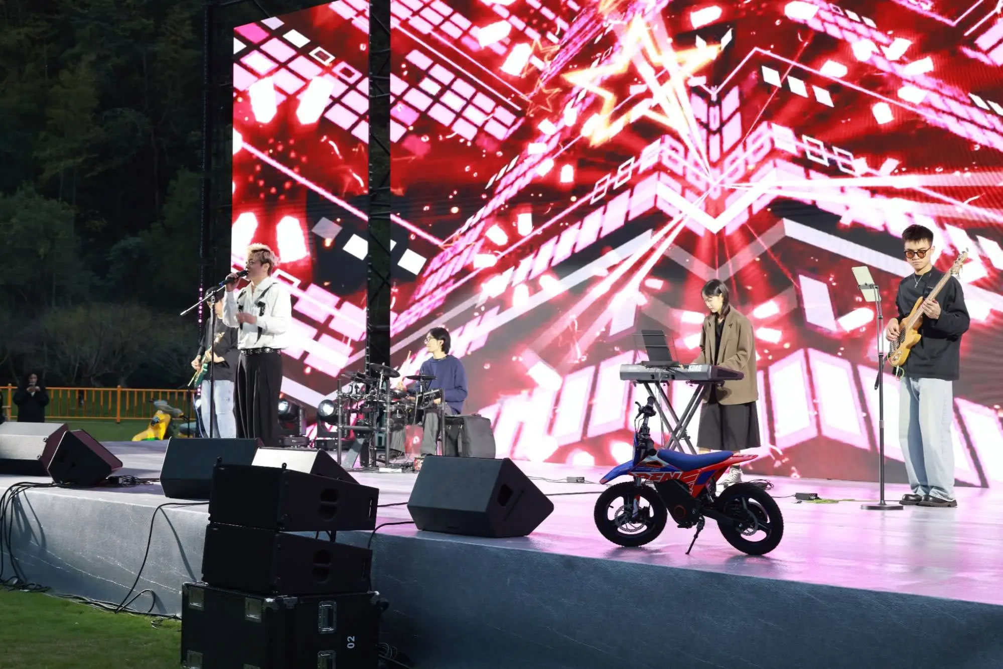 隨著機(jī)車(chē)隊(duì)伍陸續(xù)抵達(dá),十九峰大草坪迅速化身為音樂(lè)狂歡的海洋。從午后到夜晚,舞臺(tái)持續(xù)高能輸出。搖滾樂(lè)隊(duì)點(diǎn)燃全場(chǎng)熱情,流行金曲引發(fā)集體合唱。