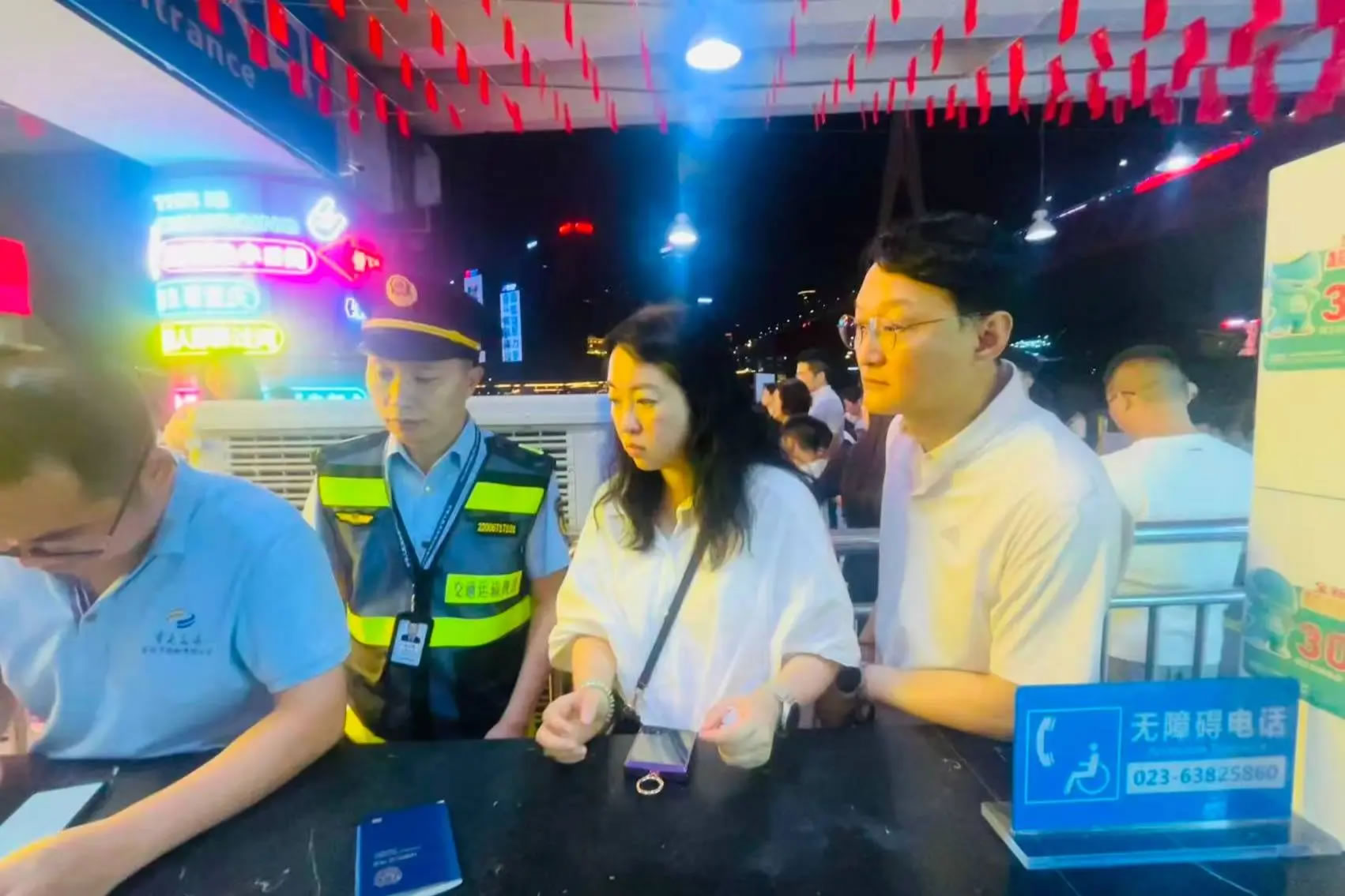 10月5日晚,兩名韓國(guó)游客因手機(jī)損壞無(wú)法出示購(gòu)票信息,向洪崖洞客運(yùn)碼頭兩江游執(zhí)法服務(wù)站求助。執(zhí)法人員一邊安撫游客,一邊協(xié)調(diào)技術(shù)人員通過(guò)后臺(tái)系統(tǒng)查詢(xún),不到5分鐘便幫助游客順利登船。這一高效處置展現(xiàn)了服務(wù)站“事企聯(lián)動(dòng)”機(jī)制的優(yōu)勢(shì),也為外國(guó)游客留下了美好的重慶印象。