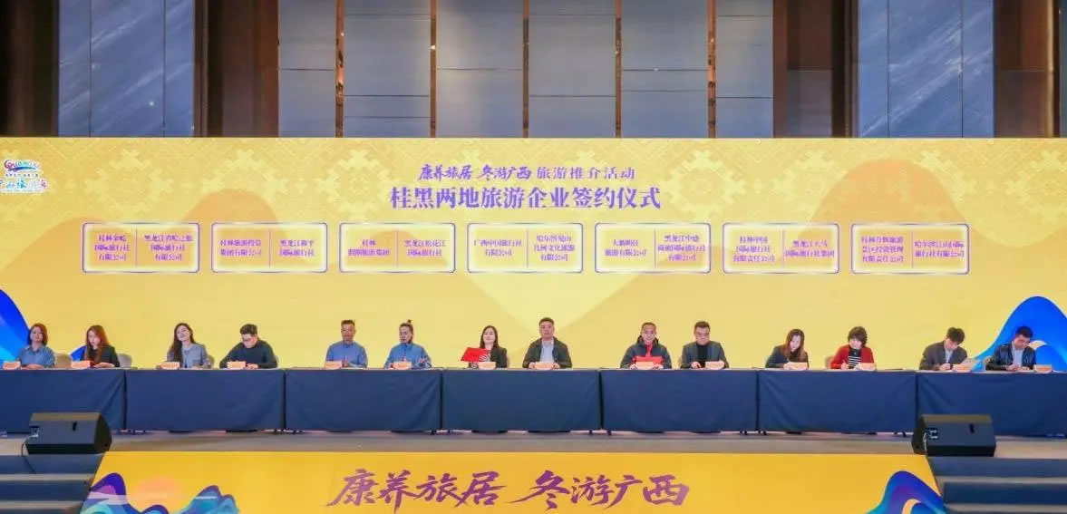此次推介活動吸引了100多家桂黑兩地旅游企業(yè)進(jìn)行深度交流,并開展桂黑兩地文旅企業(yè)產(chǎn)品對接會,達(dá)成多項合作。活動現(xiàn)場,7家廣西旅游企業(yè)與多家黑龍江省旅游企業(yè)成功簽約。