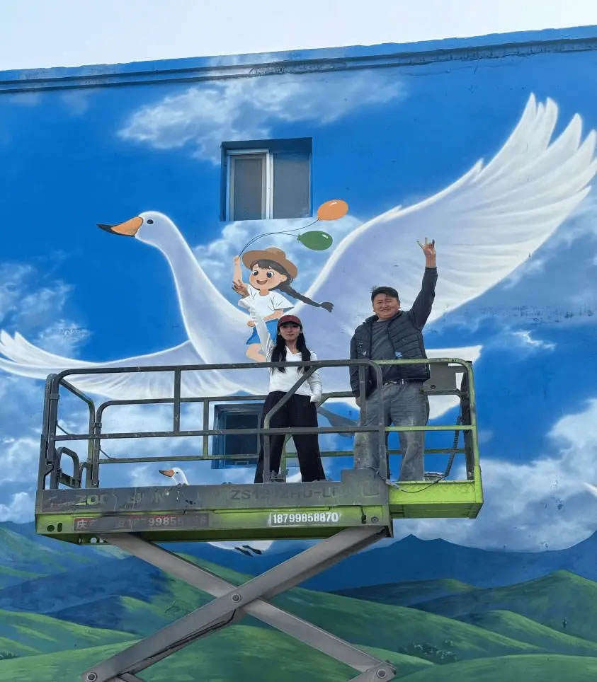 10月25日,新疆庫爾勒市杜鵑河畔天鵝驛站旁,一幅高15米、寬13米的天鵝主題彩繪正式完成創(chuàng)作。墻繪師雷雪帶領(lǐng)團隊耗時十幾天匠心打磨,將藍天白云、河流高山與靈動天鵝的景致定格在墻體之上,為這座城市的“生態(tài)名片”再添藝術(shù)亮色。