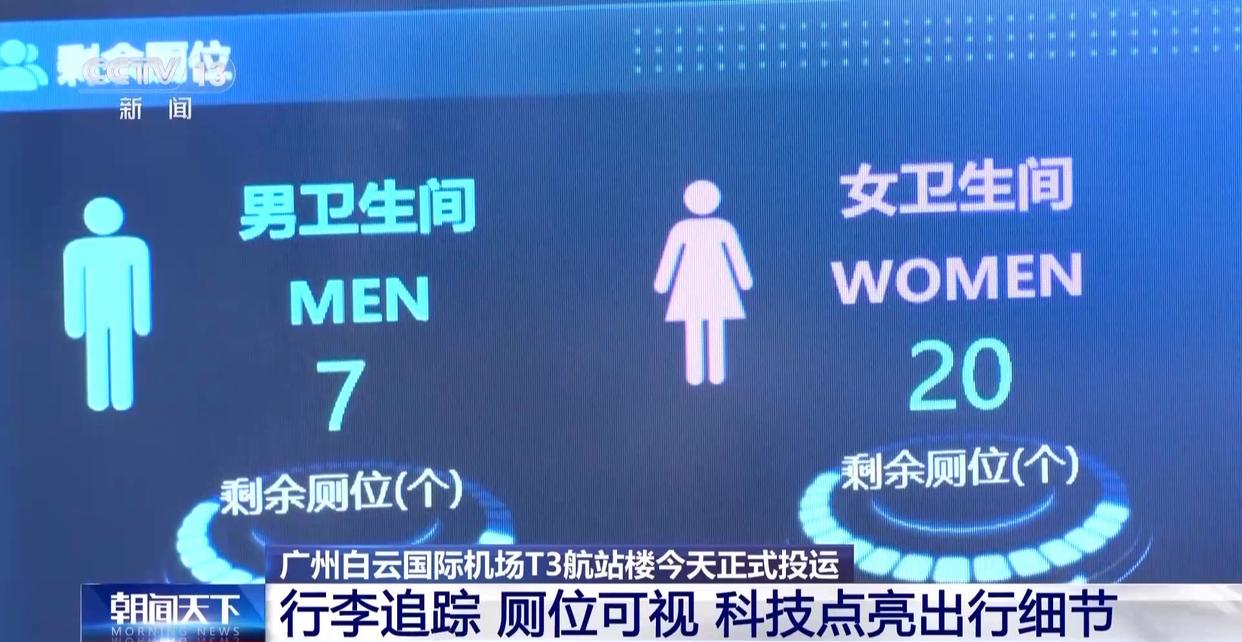 航站樓的“智慧”之處,不僅在于技術(shù)的高效,更在于1∶1.98衛(wèi)生間比例這樣細致入微的關(guān)懷。記者還注意到,航站樓公共區(qū)域的衛(wèi)生間門口都設(shè)置了智慧衛(wèi)生間顯示屏,可實時展示當(dāng)前衛(wèi)生間的使用人數(shù)、空余廁位、空氣質(zhì)量等,同時還提示旅客最近的其余衛(wèi)生間路徑指引和廁位空余情況。(來源:央視新聞)