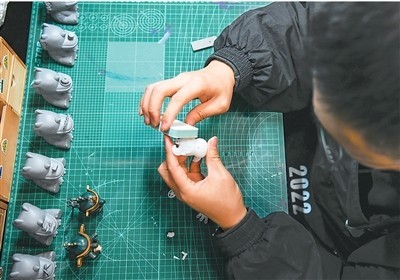 一名文創(chuàng)產(chǎn)品策劃運(yùn)營師在打磨產(chǎn)品模型。