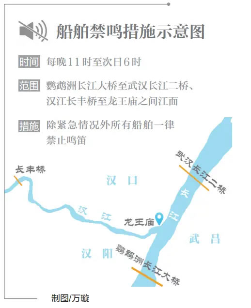 生態(tài)長江的底色愈加深厚。近日,武漢市首次在限定水域?qū)嵤┐耙归g噪聲管控。每晚11時至次日6時,武漢市鸚鵡洲長江大橋至武漢長江二橋、漢江長豐橋至龍王廟之間,總長約20公里的江面進(jìn)入“靜音模式”,除緊急情況外所有船舶一律禁止鳴笛,為兩岸群眾營造優(yōu)質(zhì)夜間休息環(huán)境。