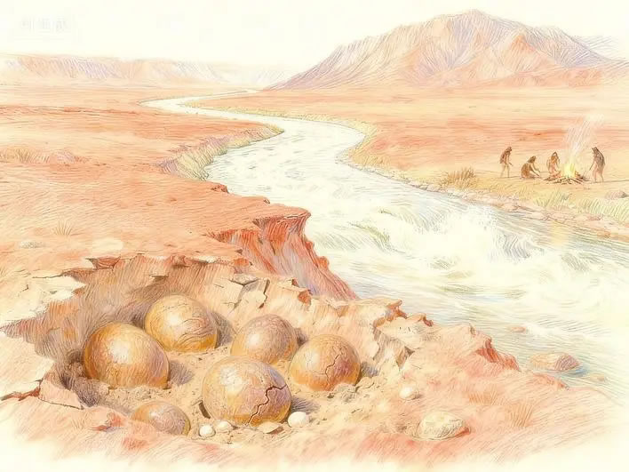 研究顯示,青龍山段古漢江河床曾經(jīng)歷多次構(gòu)造抬升(單次60米至80米)、河道北移及河谷下切,現(xiàn)存山頂325米級階地與漢江現(xiàn)河床(海拔僅170米)形成鮮明對比。這一演化過程不僅塑造了青龍山獨(dú)特的地貌,更可能成為全球罕見“埋藏淺、出露廣”的恐龍蛋化石群形成的關(guān)鍵因素。