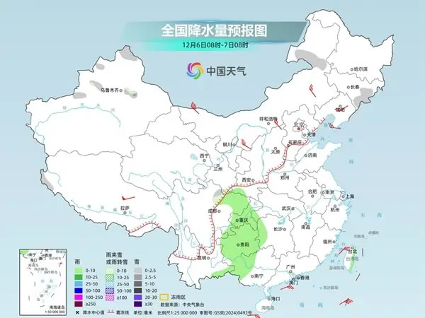 具體來看,今天,新疆北疆北部和南疆西部山區(qū)、內(nèi)蒙古東北部、黑龍江西北部、西藏東部等地部分地區(qū)有小到中雪或雨夾雪,其中,新疆北疆北部等地有大雪。貴州西南部、云南東部、廣西西部、海南島、臺(tái)灣島等地部分地區(qū)有小雨。