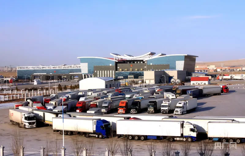 滿洲里公路口岸貨車(chē)等待進(jìn)出境(央廣網(wǎng)發(fā) 張鵬 攝)