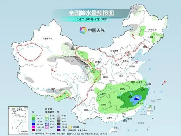 氣象部門提醒,南方近期陰雨天氣頻繁,未來(lái)三天仍多陰雨,而且29日之后還將有一輪較強(qiáng)降雨過(guò)程,江南等地強(qiáng)降水落區(qū)與前期重疊,需防范連續(xù)降雨對(duì)交通運(yùn)輸、農(nóng)業(yè)生產(chǎn)等方面的不利影響。