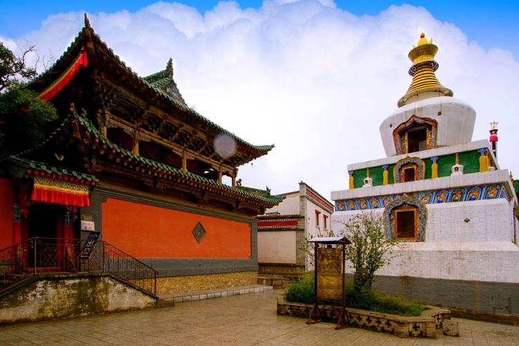 由經(jīng)堂、華門(mén)、牌坊3座殿堂組成,為漢藏合璧式建筑,是塔爾寺總法臺(tái)的居住處,達(dá)賴、班禪曾駐蹕于此。居巴扎倉(cāng)(密宗學(xué)院)系藏式平頂建筑。曼巴扎倉(cāng)、丁科扎倉(cāng)屬漢藏結(jié)合建筑。寶塔數(shù)十座,其中并列于寺前的8座如意寶塔,方座,瓶形塔身,尖頂,根據(jù)釋迦牟尼一生重要經(jīng)歷和傳說(shuō)建成。 最后終于有了塔爾寺。