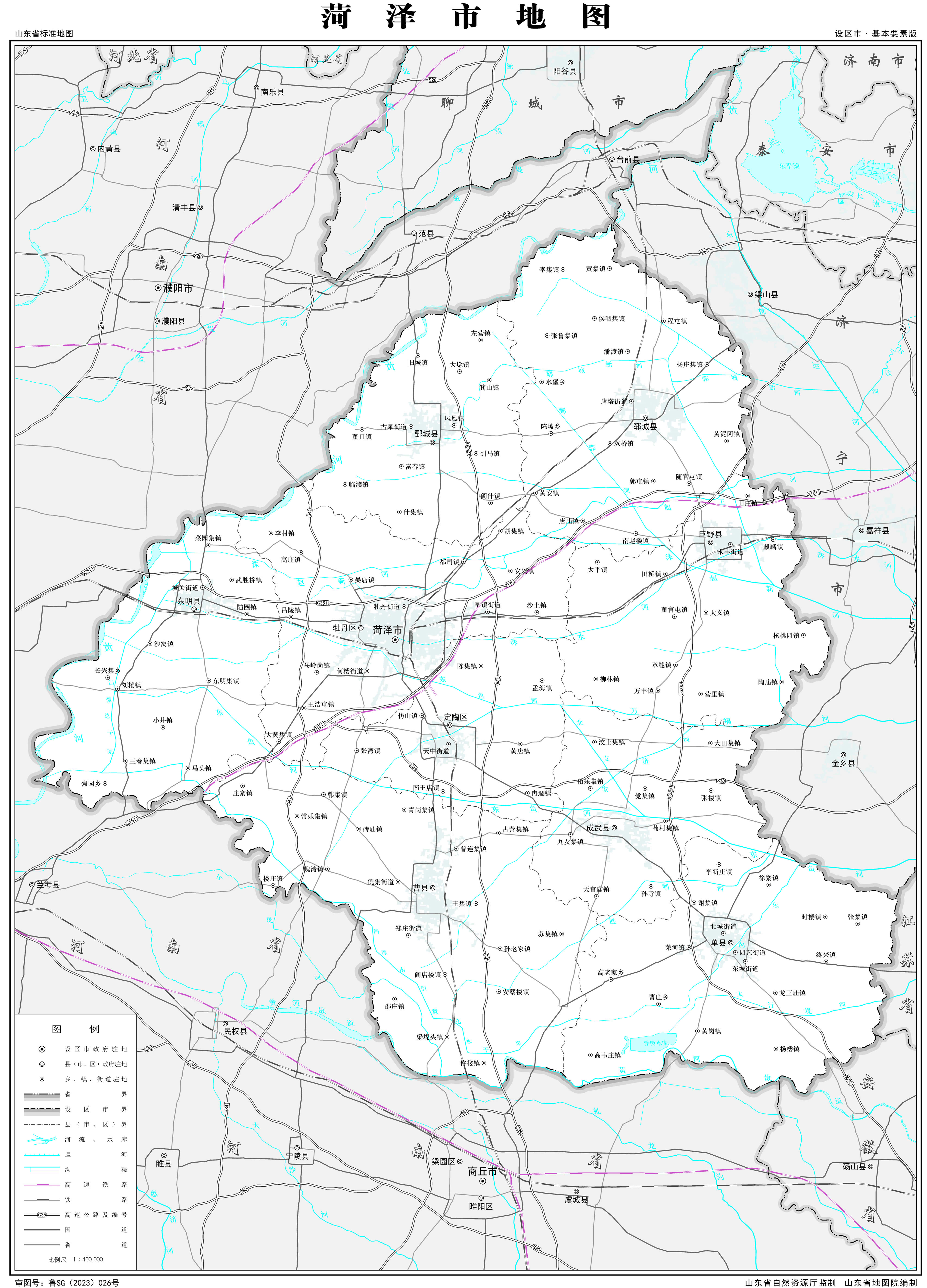 菏澤市轄2個(gè)市轄區(qū),7個(gè)縣: