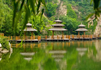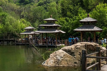 九如山以自然山水而聞名,山依水勢,水奪天工,托起一片世外奧區(qū)。遠遠望去,可見泉涌成溪,溪流成瀑,瀑落成潭,潭潭相通,匯集成八潭明鏡。是所謂:峽谷有流,聚在平湖,山泉涓滴,匯成高潭。層層疊嶂,層層儲水,一年四季,不管天公旱澇,無論氣候寒暑,九如山的潭水總是那樣清瑩玉潔,滋潤山體。游人可以在潭中泛舟,可以在池邊戲水,享受天開畫境,觸摸水景幻變,放懷吸取大自然的無窮靈感。