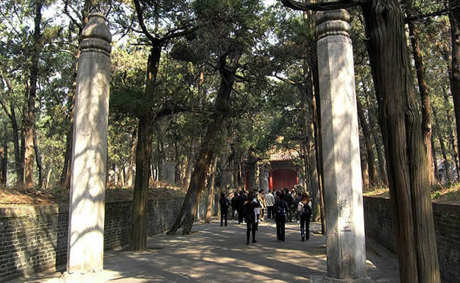 孔林本稱至圣林,是孔子及其家族的墓地。 孔子死后,弟子們把他葬于魯城北泗水之上,那時(shí)還是“墓而不墳”(無高土 隆起)。到了秦漢時(shí)期,雖將墳高筑,但仍只有少量的墓地和幾家守林人后來隨著孔子地位的日益提高,孔林的規(guī)模越來越大。東漢桓帝永壽三年(公元157年),魯相韓勅修孔墓,在墓前造神門