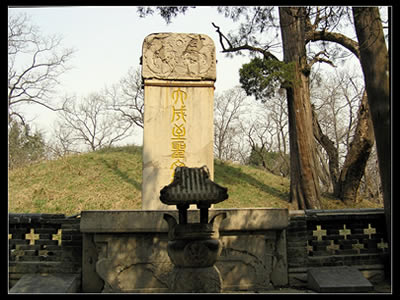享殿之后是孔林的中心所在--孔子墓。此墓似一隆起的馬背,稱馬鬣封。墓周環(huán)以紅色垣墻,周長里許。墓前有巨墓篆刻“大成至圣文宣王墓”,是明正統(tǒng)八年(公元1443年)黃養(yǎng)正書。墓前的石臺(tái),初為漢修,唐時(shí)改為泰山運(yùn)來的封禪石筑砌,清