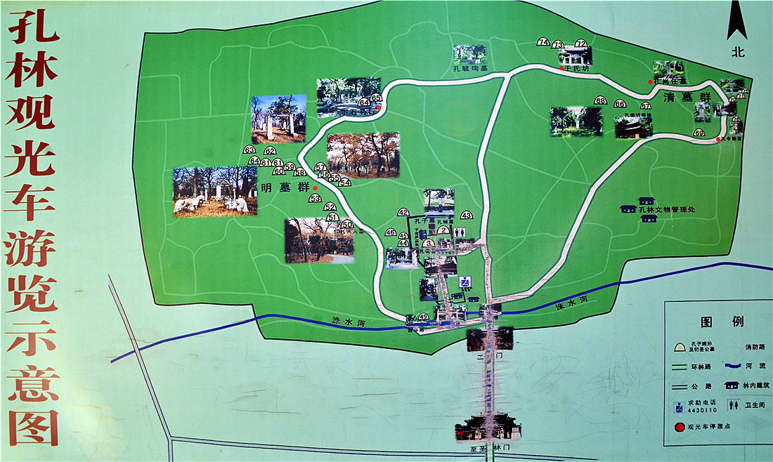 乾隆時(shí)又予擴(kuò)大。孔子墓東為其子孔鯉墓,南為其孫孔伋墓,這種墓葬布局名為攜子抱孫。