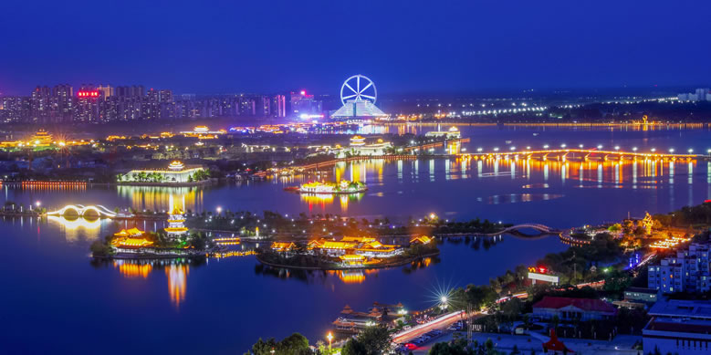 國(guó)家4A級(jí)旅游區(qū)、山東省重點(diǎn)服務(wù)業(yè)園區(qū)、山東省生態(tài)漁業(yè)示范園、國(guó)家垂釣基地,也是“江北水城·運(yùn)河古都——生態(tài)聊城”城市品牌的核心區(qū)域。位于聊城市中心城區(qū),由10個(gè)湖區(qū)和20塊水面組成,總面積6.3平方千米,湖岸線長(zhǎng)達(dá)16千米,有“南有西子,北有東昌”之美譽(yù),是中國(guó)江北地區(qū)罕見(jiàn)的大型城內(nèi)湖泊。東昌湖湖始于北宋熙寧三年(1070年),水深平均達(dá)3米,最深處5米。水質(zhì)清澈,景色宜人,適宜水上游樂(lè)項(xiàng)目的開(kāi)發(fā)與建設(shè)。