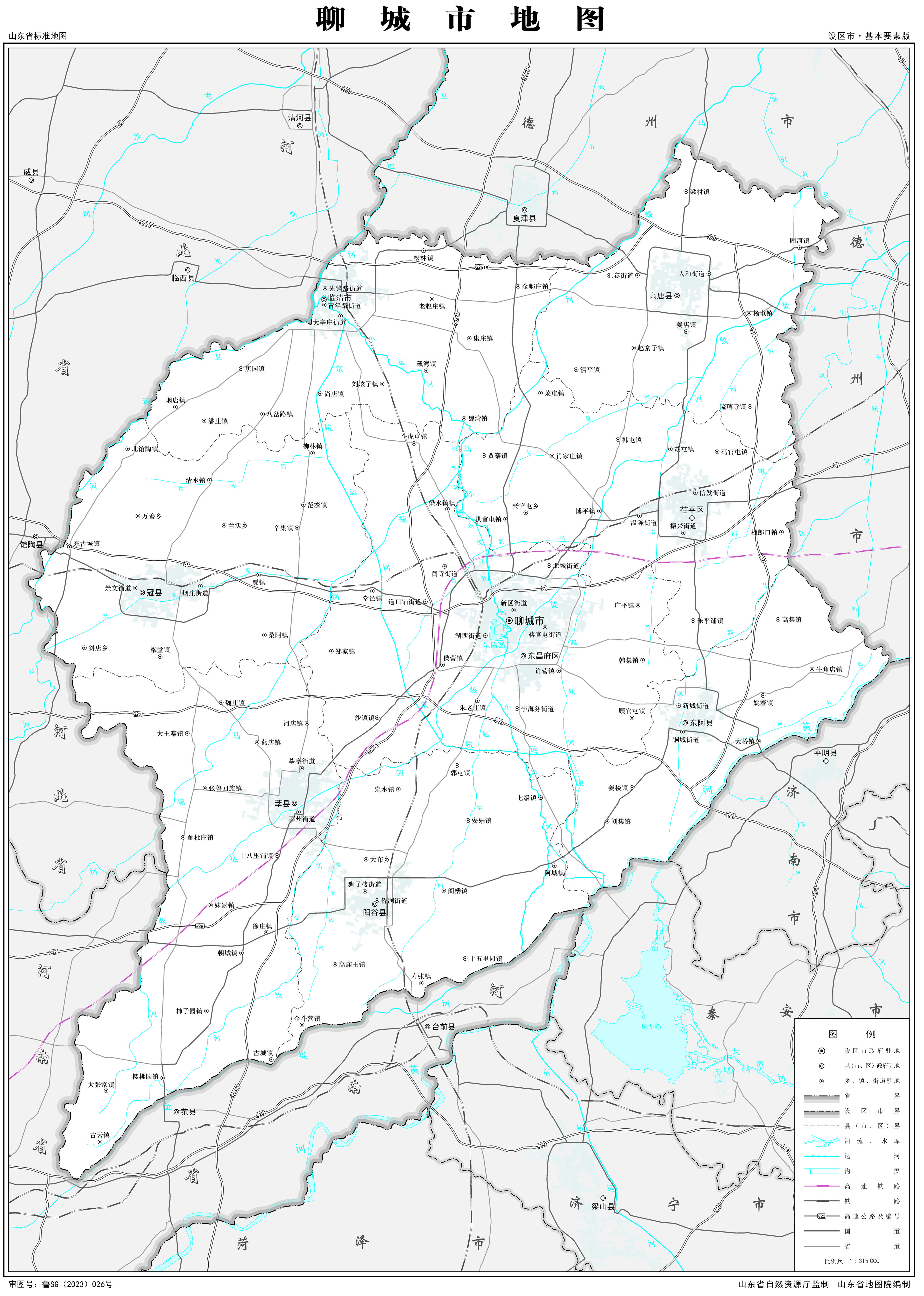 聊城市轄2個(gè)市轄區(qū),5個(gè)縣,代管1個(gè)省轄市: